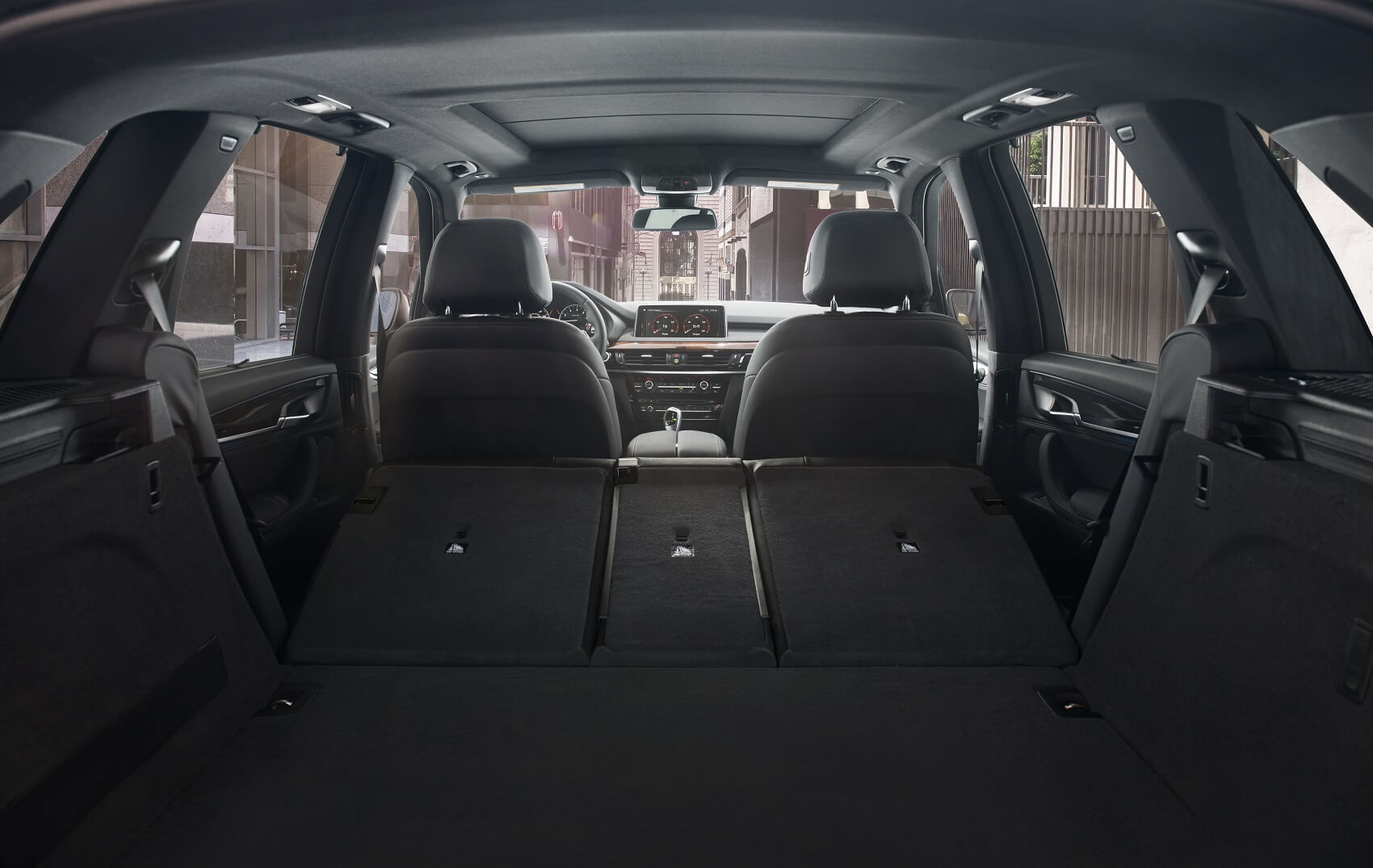 The X5 has ample cargo space for all your shopping and weekend adventures. The gas-powered model features 33.9 cubic feet of cargo space behind the rear seats, which expands to 72.3 cubic feet with the seats folded down. The hybrid model has 33.1 cubic feet with the seats upright and 71.2 cubic feet with the seats folded down.