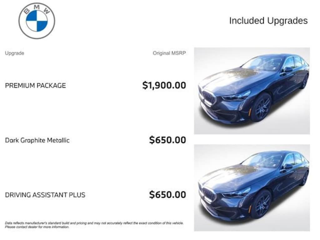 The Premium Package takes this vehicle to the next level, offering Remote Engine Start, BMW Curved Display with Head-Up Display, Parking View with 3D View, Heated Steering Wheel, and much more. The Driving Assistant Plus package further enhances your driving experience with Distance Control and Steering Assistant.