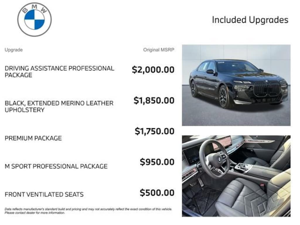 The 7 Series is equipped with the powerful 3.0L I6 DOHC 24V TwinPower Turbo engine, delivering an impressive 24 city / 31 highway MPG. Paired with the 8-Speed Automatic Sport transmission and BMW's renowned all-wheel-drive system, this sedan offers a thrilling and confident driving experience.