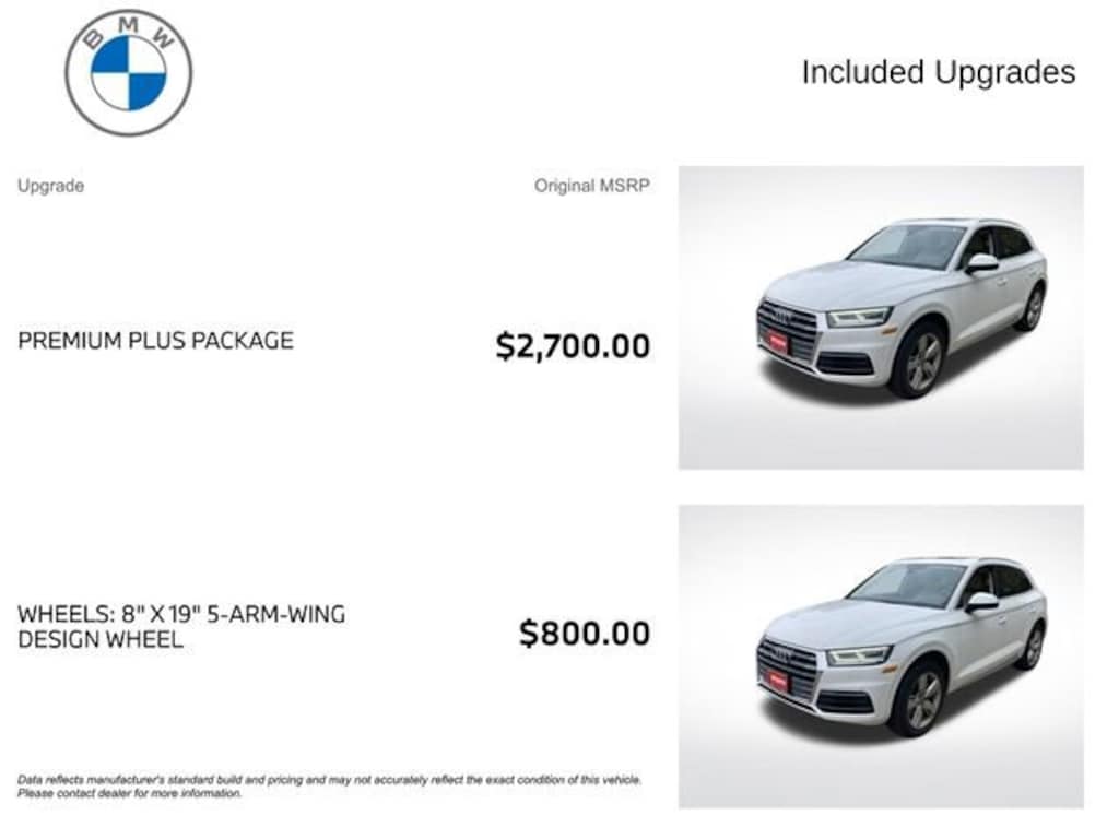 I just traded in my 2018 Audi Q3 Premium Plus for a CPO 2019 Audi Q5 Premium Plus. What a difference! The Q5 has excellent acceleration. It is quite comfortable on different types of road surfaces. Wind and road noise is kept to a minimum. The infotainment screen could have been better integrated into the dash. It does look like a tablet was glued on... however, I am able to overlook that. The overall user interface is easy to learn. The Virtual Cockpit is highly customizable and futuristic. The exterior design is conservative, but attractive at the same time. Audi is known for timeless designs and the Q5 is no exception. Front seats are comfortable, but I wish the passenger side had lumbar support. The trunk volume is perfect for my everyday needs... I am able to fit my mountain bike with the rear passenger seats folded down. I can fit my snowboard easily as well. When it came time to trade in my 2018 Q3, I was disappointed with the latest 2020 Q3. It didn't feel like I was getting bang for my buck and the gas mileage was disappointing... so I went with a CPO 2019 Audi Q5 instead. I'm looking forward to many road trips in the Q5.…