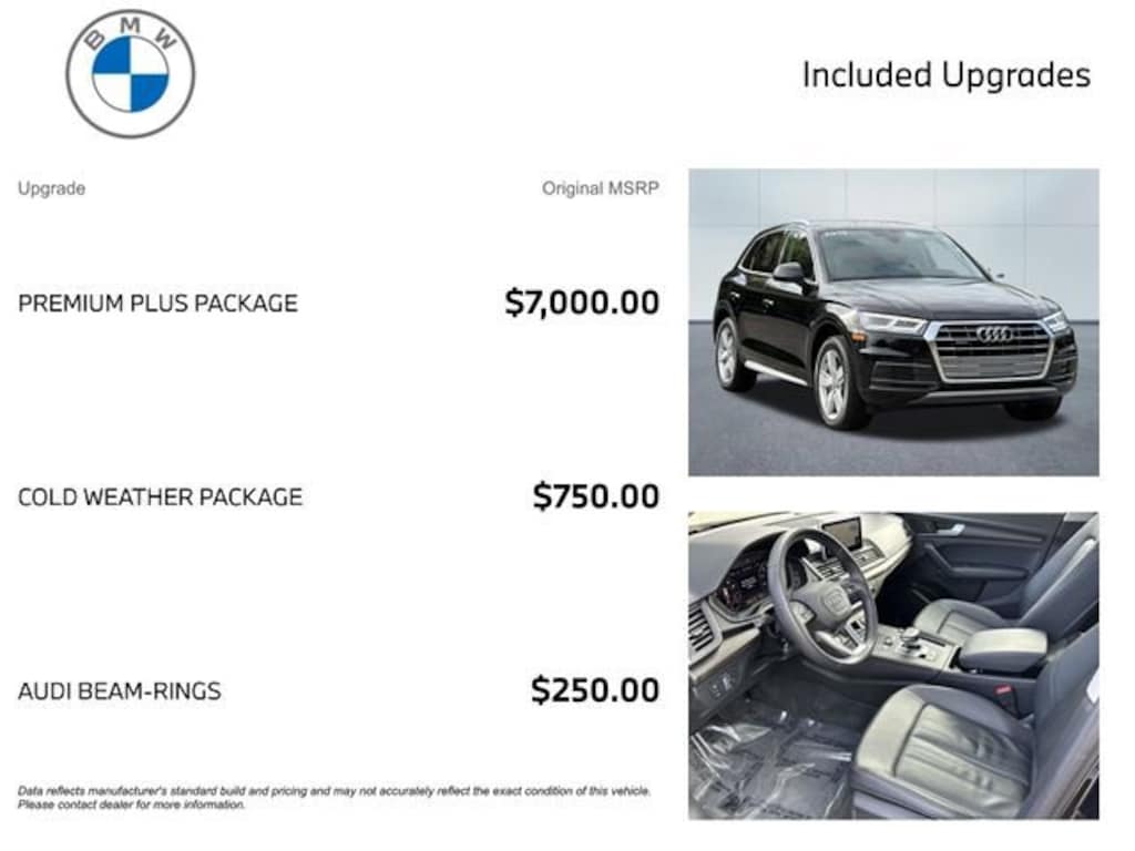 I just traded in my 2018 Audi Q3 Premium Plus for a CPO 2019 Audi Q5 Premium Plus. What a difference! The Q5 has excellent acceleration. It is quite comfortable on different types of road surfaces. Wind and road noise is kept to a minimum. The infotainment screen could have been better integrated into the dash. It does look like a tablet was glued on... however, I am able to overlook that. The overall user interface is easy to learn. The Virtual Cockpit is highly customizable and futuristic. The exterior design is conservative, but attractive at the same time. Audi is known for timeless designs and the Q5 is no exception. Front seats are comfortable, but I wish the passenger side had lumbar support. The trunk volume is perfect for my everyday needs... I am able to fit my mountain bike with the rear passenger seats folded down. I can fit my snowboard easily as well. When it came time to trade in my 2018 Q3, I was disappointed with the latest 2020 Q3. It didn't feel like I was getting bang for my buck and the gas mileage was disappointing... so I went with a CPO 2019 Audi Q5 instead. I'm looking forward to many road trips in the Q5.…