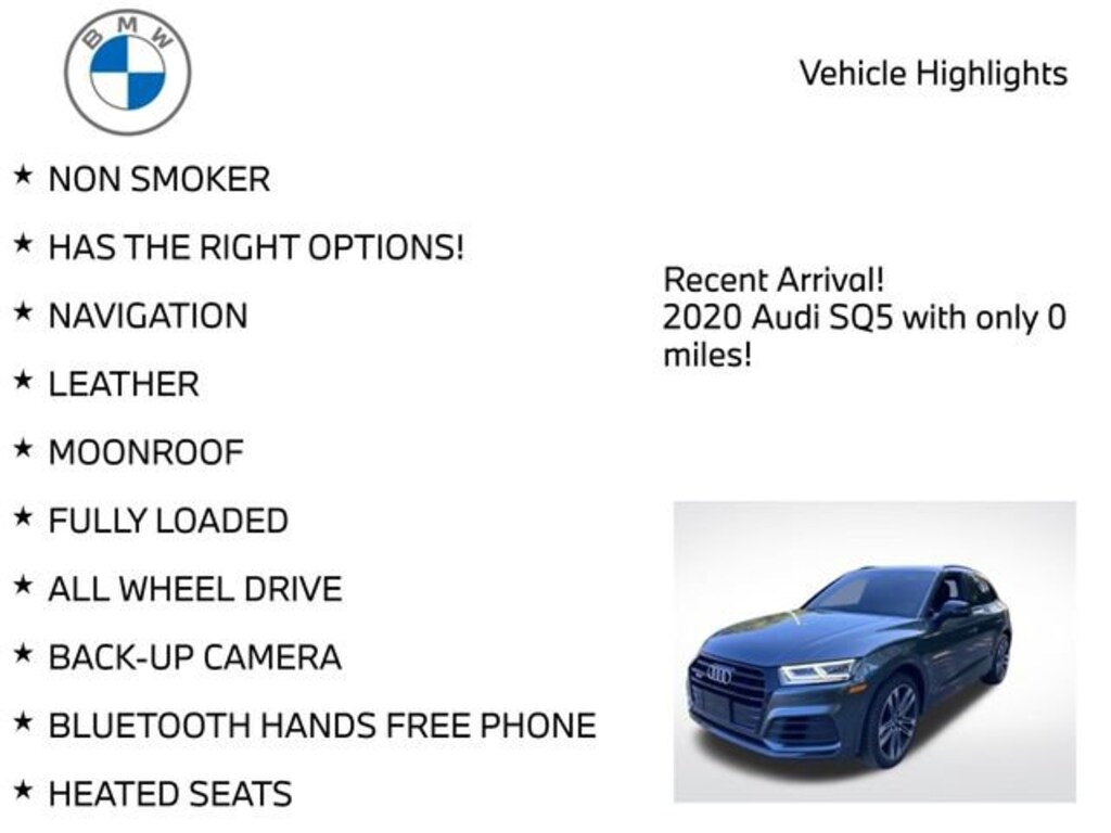 This 2020 Audi SQ5 3.0T Premium Plus quattro is a true masterpiece of engineering and design. With its uncompromising performance, cutting-edge technology, and exceptional craftsmanship, it's the ultimate choice for the discerning driver. Don't miss your chance to own this exceptional vehicle.