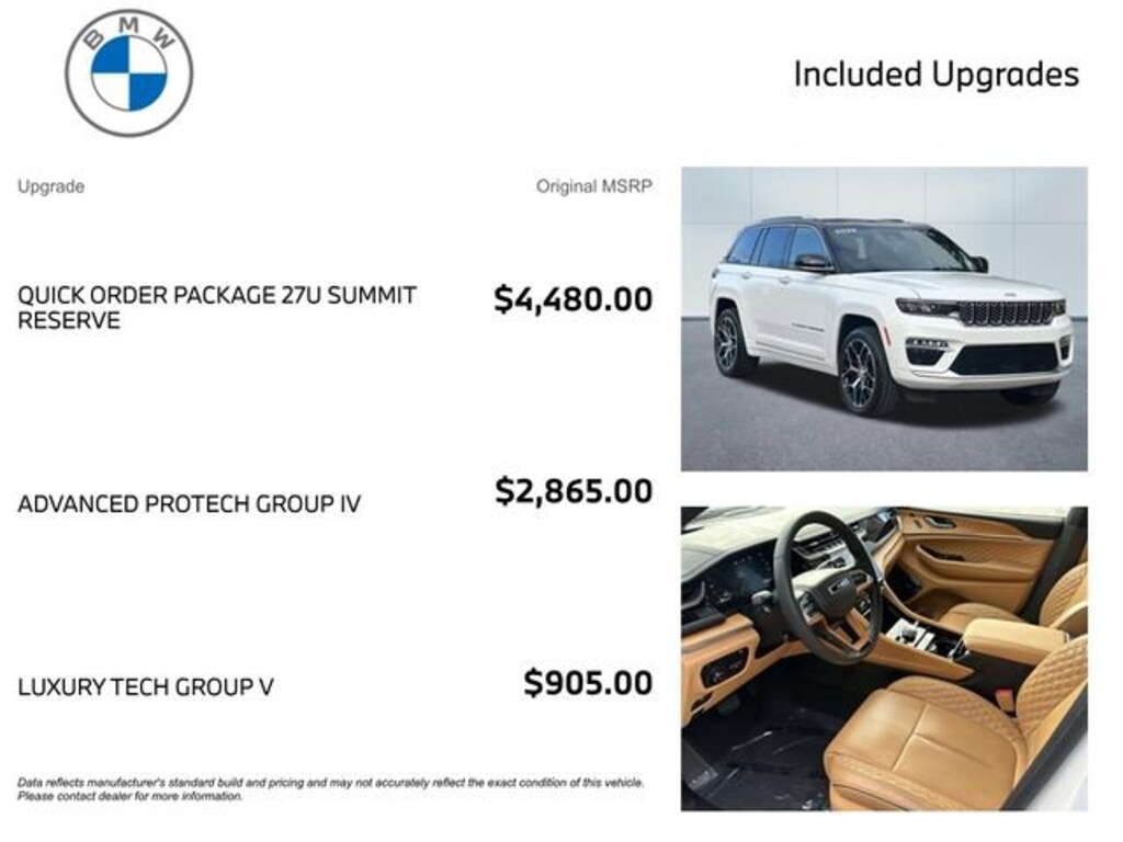 The Quick Order Package 27U Summit Reserve further enhances this vehicle's capabilities, offering a 2.0L I4 DOHC DI Turbo PHEV engine, 8-Speed Automatic 8P75PH PHEV transmission, and a host of advanced technology and luxury features. The Advanced Protech Group IV and Luxury Tech Group V packages add even more convenience and peace of mind, with features like Head Up Display, Rearview Autodim Digital Display Mirror, Wireless Charging Pad, and 2nd-Row Manual Window Shades.