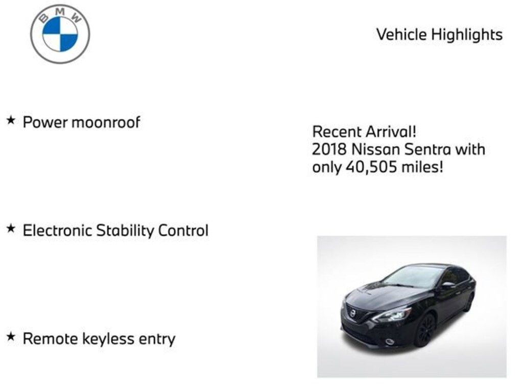 This 2018 Nissan Sentra SR is the perfect blend of style, performance, and technology, making it an exceptional value in the compact sedan segment. With low mileage and an exceptional list of features, this Sentra SR is a must-see for any discerning buyer. Schedule a test drive today and experience the thrill of driving this remarkable vehicle.