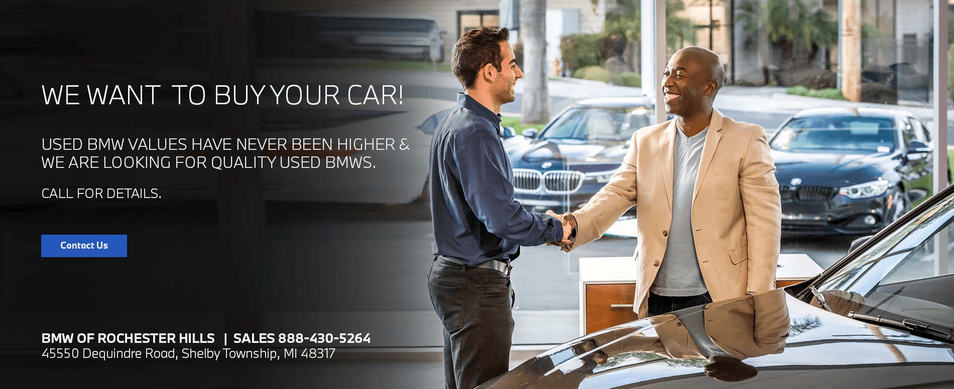 Interested in selling your BMW or another pre-owned vehicle? At BMW of Rochester Hills, we buy cars! Serving drivers around Rochester Hills, Oakland Township, and Sterling Heights, MI, we'll purchase your vehicle whether you choose to buy your next car from us or not.